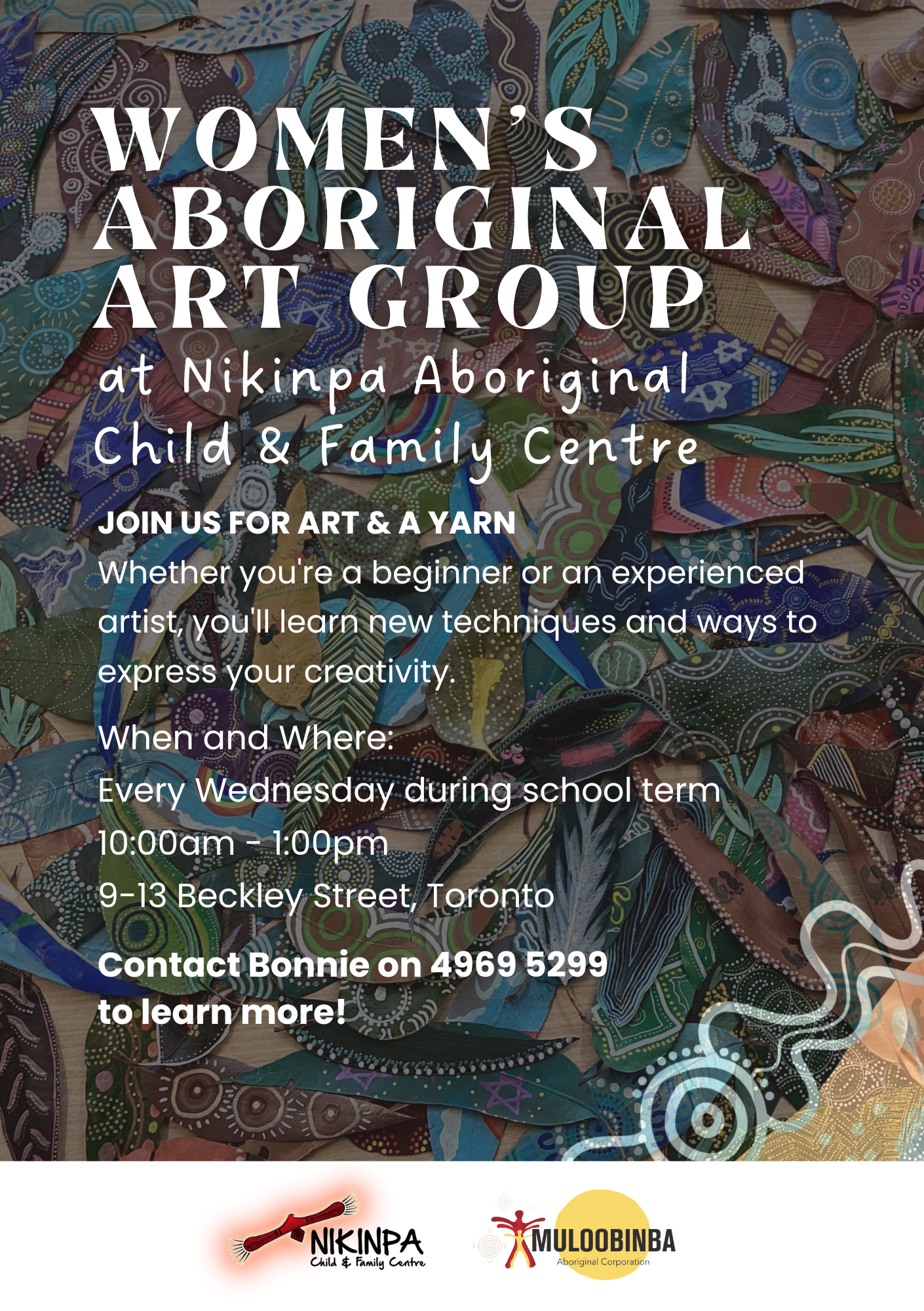 Nikinpa Aboriginal Women's Art Group Wednesday 29 April 2026 11:00 am 1:00 pm Nikinpa Aboriginal Child & Family Centre 9 Beckley Street Toronto, NSW, 2283 Australia (map) Google Calendar ICS