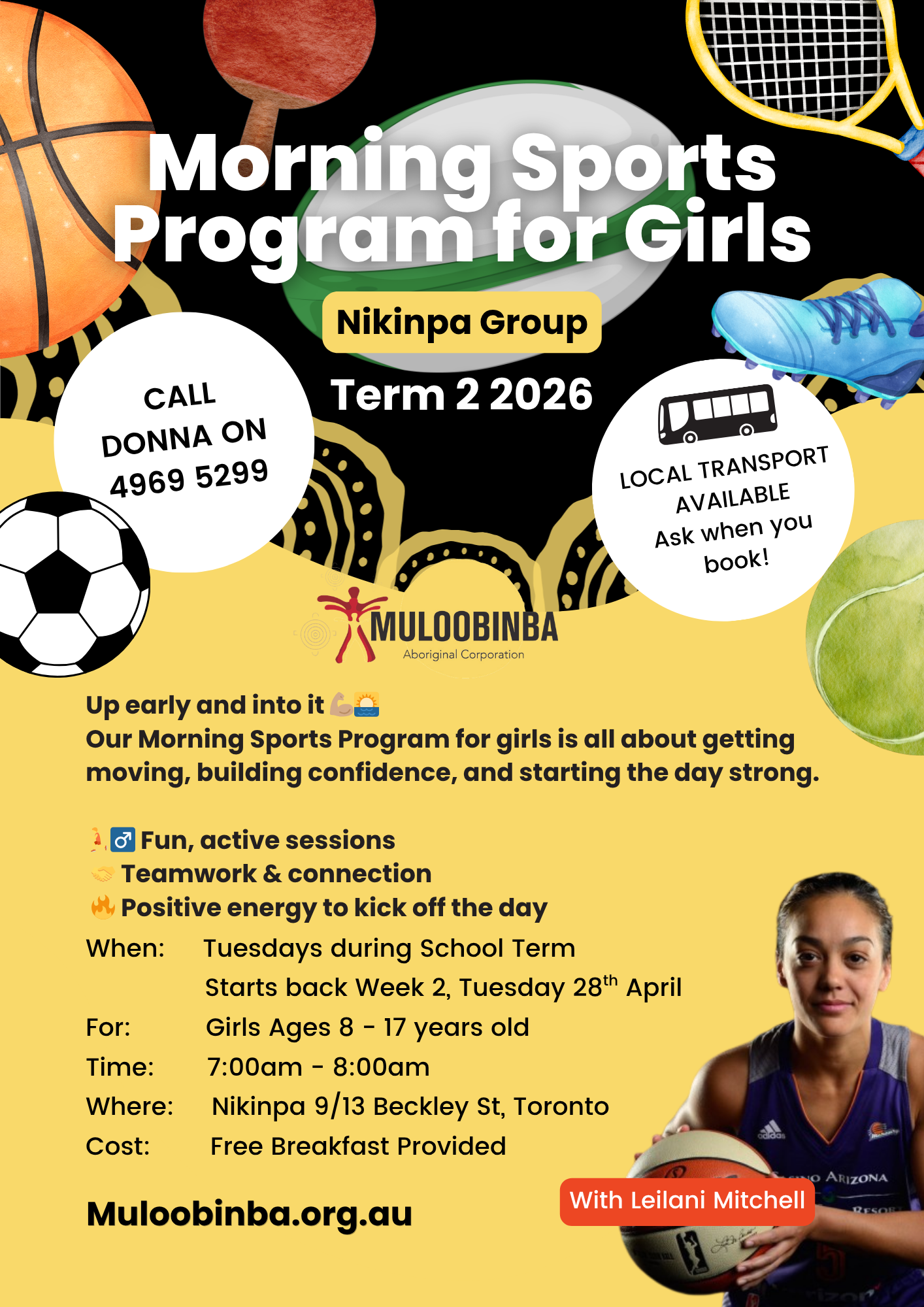 Girls Morning Sports Program Tuesday 30 June 2026 7:00 am 8:00 am Nikinpa 9 Beckley Street Toronto, NSW, 2283 Australia (map) Google Calendar ICS
